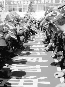 5月4日,武警云南總隊迪慶支隊組織開展了以“迎奧運、保安全、促和諧”為主題的為奧運助威加油簽名活動,表達官兵對奧運的期盼和祝福。郭岸英攝