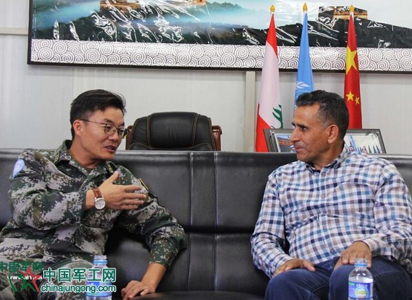 國第16批赴黎維和部隊指揮長黃云上校與聯合國核查人員交流。董永康 攝
