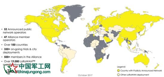 圖:LoRa網(wǎng)絡的全球覆蓋情況