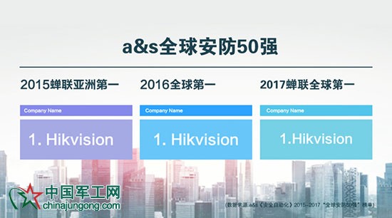 近日,知名媒體a&s《安全自動化》公布了2017全球安防50強榜單,繼2016年全球第一的佳績之后,??低暯衲晗s聯榜單首位。