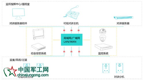 監(jiān)管:主機可部署于看守所/監(jiān)獄指揮中心,各廠房、車間、監(jiān)舍、醫(yī)院、食堂、風場等區(qū)域可配備對講分機;實現(xiàn)對異常犯情進行實時監(jiān)聽監(jiān)視,大幅提高監(jiān)所安全防范水平。