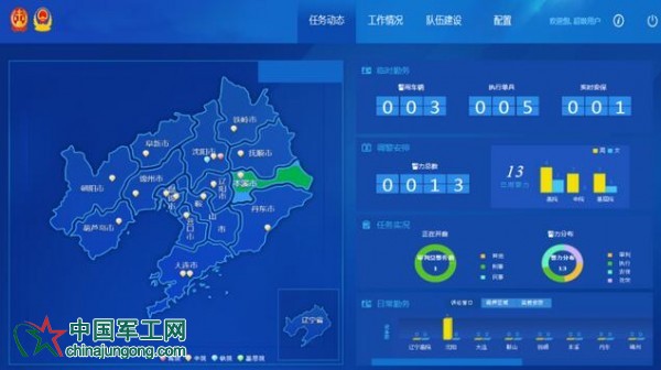 司法警務(wù)指揮平臺可與法院現(xiàn)有的調(diào)警管理系統(tǒng)進行對接,獲取完整的調(diào)警信息以及警力分配情況。調(diào)警數(shù)據(jù)以柱狀圖的方式清晰直觀地展示在任務(wù)動態(tài)中,每個任務(wù)詳情包括任務(wù)名稱、區(qū)域、人員、時間以及相關(guān)視頻,根據(jù)這些警力分配數(shù)據(jù)可更加快速科學(xué)地調(diào)用警力資源。