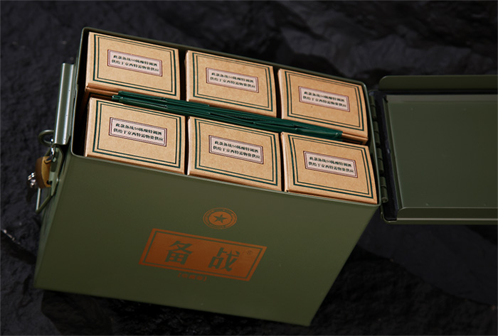 "備戰(zhàn)"系列的包裝設計極具辨識度。軍綠色調(diào)搭配全鋼結(jié)構(gòu)的復古彈藥箱造型,開啟時的金屬聲響仿佛穿越時空。