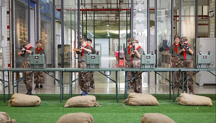 “這所學校里有射擊中心、槍械拆裝室等專用場地,走廊墻面變身‘英雄長廊’,大課間操融入旗語與隊列訓練。這種浸潤式環境,使紀律、責任、協作等軍人優秀品質悄然內化為學生的日常行為習慣。”北苑小學國防副校長、體育組軍體老師張光元也是一名退役軍人,他說,“這種深度融合并未擠占教學時間,反而成為提升育人質量的新動能。”
