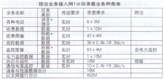 廣東省江肇高速公路綜合業務接入網承載的業務信息種類除語音外、還有大量數據和圖像,業務帶寬要求高,具體業務種類和要求如下表所示:
