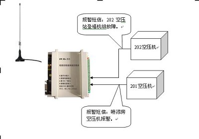 針對這個情況,單位在每個壓縮機房安裝了DTP_RD+B工業手機短信報警裝置,當設備故障時,同時給各級領導和設備維修人員的手機發送報警短信。當維修人員收到短信后立即前往機房排除故障,如果在半小時內故障未排除,將會再次收到故障短信通知。